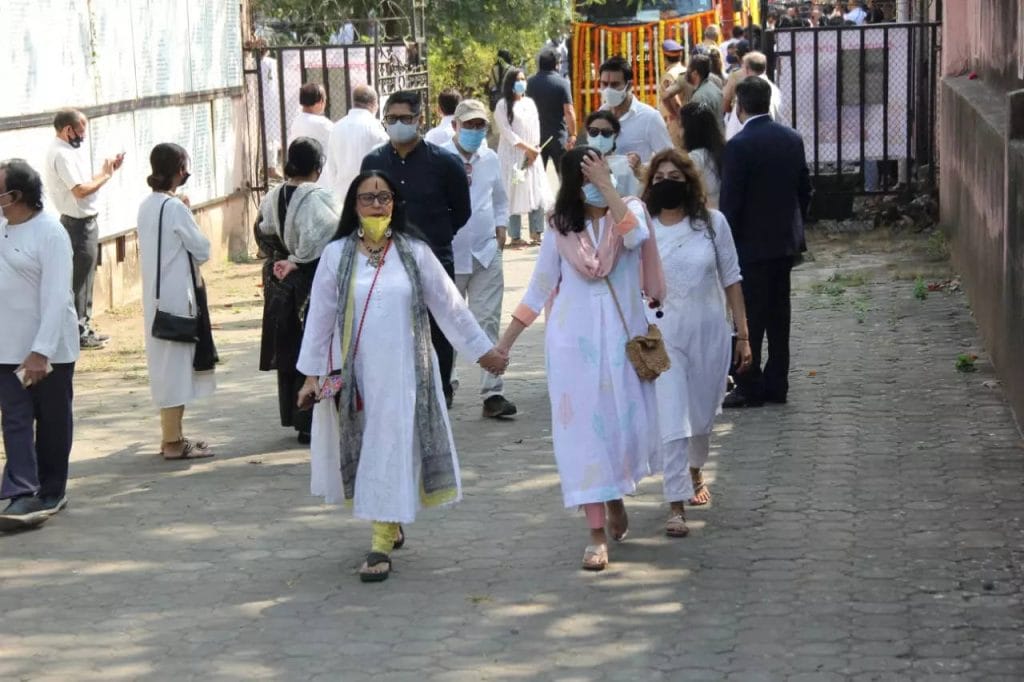 His don Bappa Lahiri and son-in-law Govind Bansal were seen carrying his mortal remains to the crematorium. The Lahiri family is shattered and is inconsolable. A truck decked up with flowers carried the musician’s body to the crematorium at round 10 AM. Many celebrities from the Bollywood industry arrived to pay their last respects to the revered musician. Vidya Balan, Ila Arun, Abhijeet Bhattacharya, Alka Yagnik, Kajol and her family were present among others.