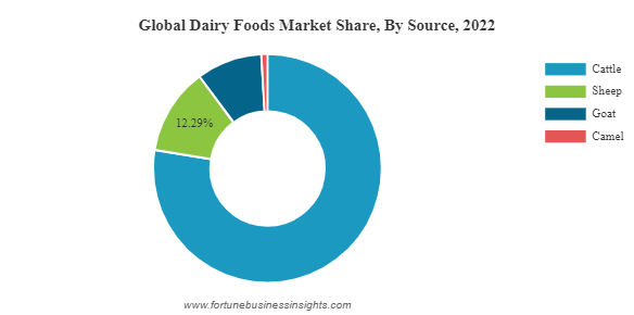 Based on source, the market is divided into cattle, sheep, camel, and goats. The cattle segment is dominating the dairy foods market share as it has several health benefits, such as high quantity of vitamins & minerals, ease in digestion due to low protein & fat content, and high water proportion.