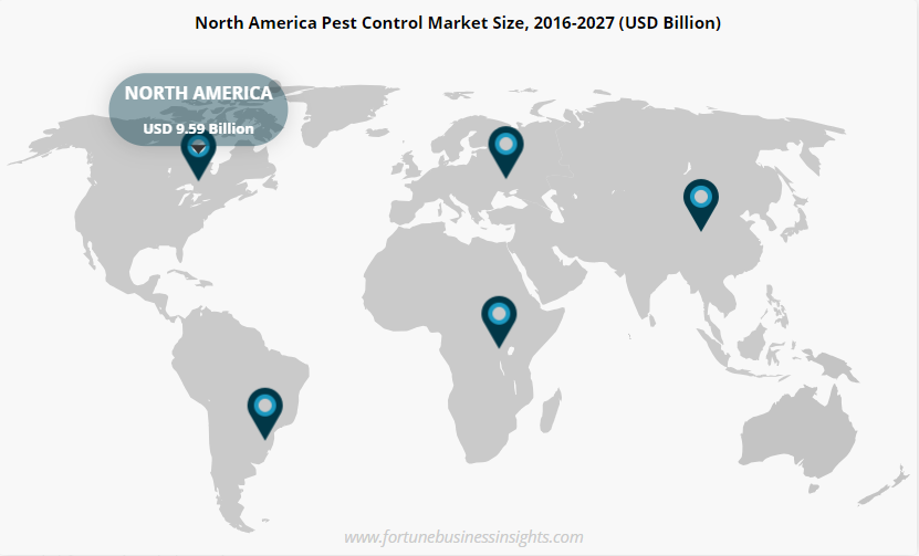 The increased awareness about the ill-effects of pest attacks on health and hygiene is a major factor boosting the North American market, thereby making it the largest contributor. In 2019, this region gathered a revenue of USD 9.59 billion on account of the increasing number of commercial and residential infrastructural development activities. This coupled with the presence of a majority of pest management market manufacturers will help this region continue dominating in the near future.