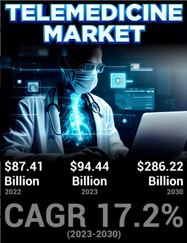 As per the report by Fortune Business Insights, the Telemedicine Market size is projected to reach USD 286.22 Billion by 2030, at a CAGR of 17.2%.